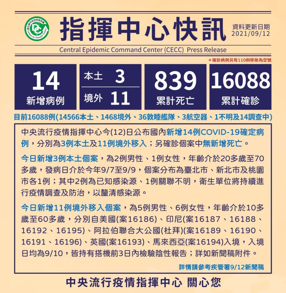 中央流行疫情指揮中心によると本日の台南市のコロナ感染者は0人、連続76日感染者0です。引き続き油断せず不要な外出を避け、マスクの着用、手洗い、消毒を徹底しましょう。 -